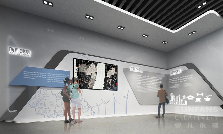 ? ? ? 園區(qū)展廳是園區(qū)招商、領(lǐng)導(dǎo)接待的核心場所,已成為每個(gè)產(chǎn)業(yè)園區(qū)、經(jīng)濟(jì)技術(shù)開發(fā)區(qū)的核心具備要素。賽凡設(shè)計(jì)的重慶高新區(qū)展廳就園區(qū)規(guī)劃、區(qū)位優(yōu)勢(shì)、功能優(yōu)勢(shì)和園區(qū)配套設(shè)施等綜合性功能進(jìn)行了全面展示,并系統(tǒng)介紹了園區(qū)的開發(fā)歷史和發(fā)展前景等,將成為參觀者了解園區(qū)的重要窗口。在展示手段上,應(yīng)用了壁掛沙盤、沉浸式影院、全息投影等多項(xiàng)創(chuàng)新展示手段,為內(nèi)容呈現(xiàn)提供了更多可能。