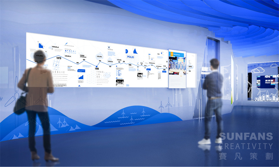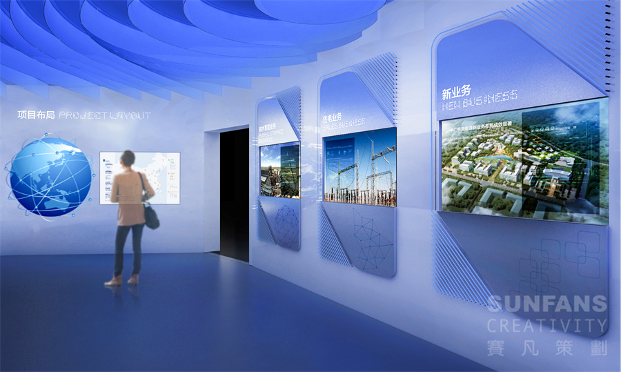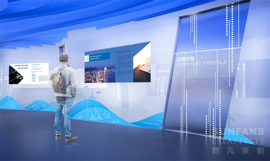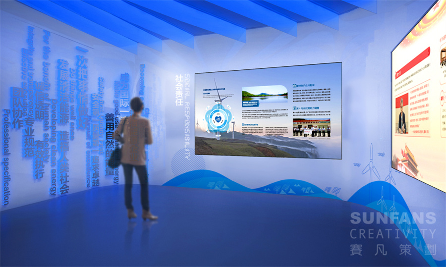 展廳設(shè)計(jì)立足中廣核集團(tuán)傳播基礎(chǔ),通過(guò)展現(xiàn)中廣核集團(tuán)及新能源公司的發(fā)展歷程、業(yè)務(wù)布局及核心成果,突出新能源公司堅(jiān)持不懈、勇于開(kāi)拓、敢于擔(dān)當(dāng)?shù)母镄戮瘛?