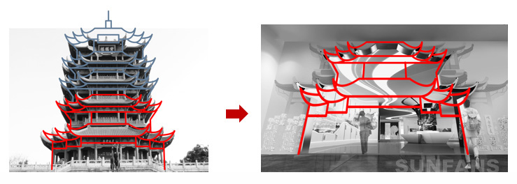 我們提取地域特色,將武漢地域元素與啟迪科技特色相結合,打造了造型各異、和諧相融的展示景觀。