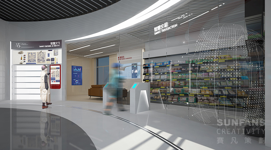 賽凡策劃設(shè)計(jì)的貨幣體驗(yàn)館,圍繞“數(shù)字貨幣”的金融主題,結(jié)合軟硬件設(shè)施與科技金融服務(wù)場(chǎng)景兩大模塊,主要展現(xiàn)客戶在數(shù)字貨幣方面的探索成果及未來業(yè)務(wù)場(chǎng)景建設(shè)方向。