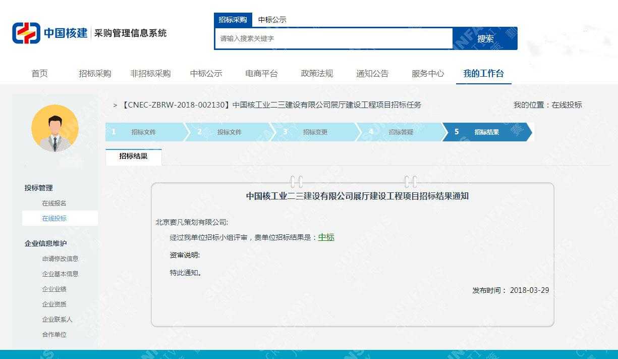 恭喜賽凡中標(biāo)中國(guó)核工業(yè)二三建設(shè)有限公司展廳項(xiàng)目,中國(guó)核工業(yè)二三建設(shè)有限公司(簡(jiǎn)稱“中核二三公司”),中國(guó)核工業(yè)建設(shè)股份有限公司重要成員單位,創(chuàng)立于1958年,是中國(guó)規(guī)模大型的核工程綜合安裝企業(yè),是國(guó)際上一家連續(xù)30余年不間斷從事核電站核島安裝的大型企業(yè),是經(jīng)國(guó)家住房與城鄉(xiāng)建設(shè)部核定的施工總承包一級(jí)企業(yè),擁有聯(lián)合國(guó)國(guó)際原子能機(jī)構(gòu)(IAEA)授權(quán)的“核電建設(shè)國(guó)際培訓(xùn)中心”,中國(guó)核工業(yè)建設(shè)股份有限公司和中廣核工程有限公司為共同出資人。