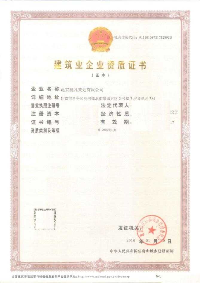 賽凡獲得建筑裝修裝飾工程專(zhuān)業(yè)承包二級(jí)資質(zhì)