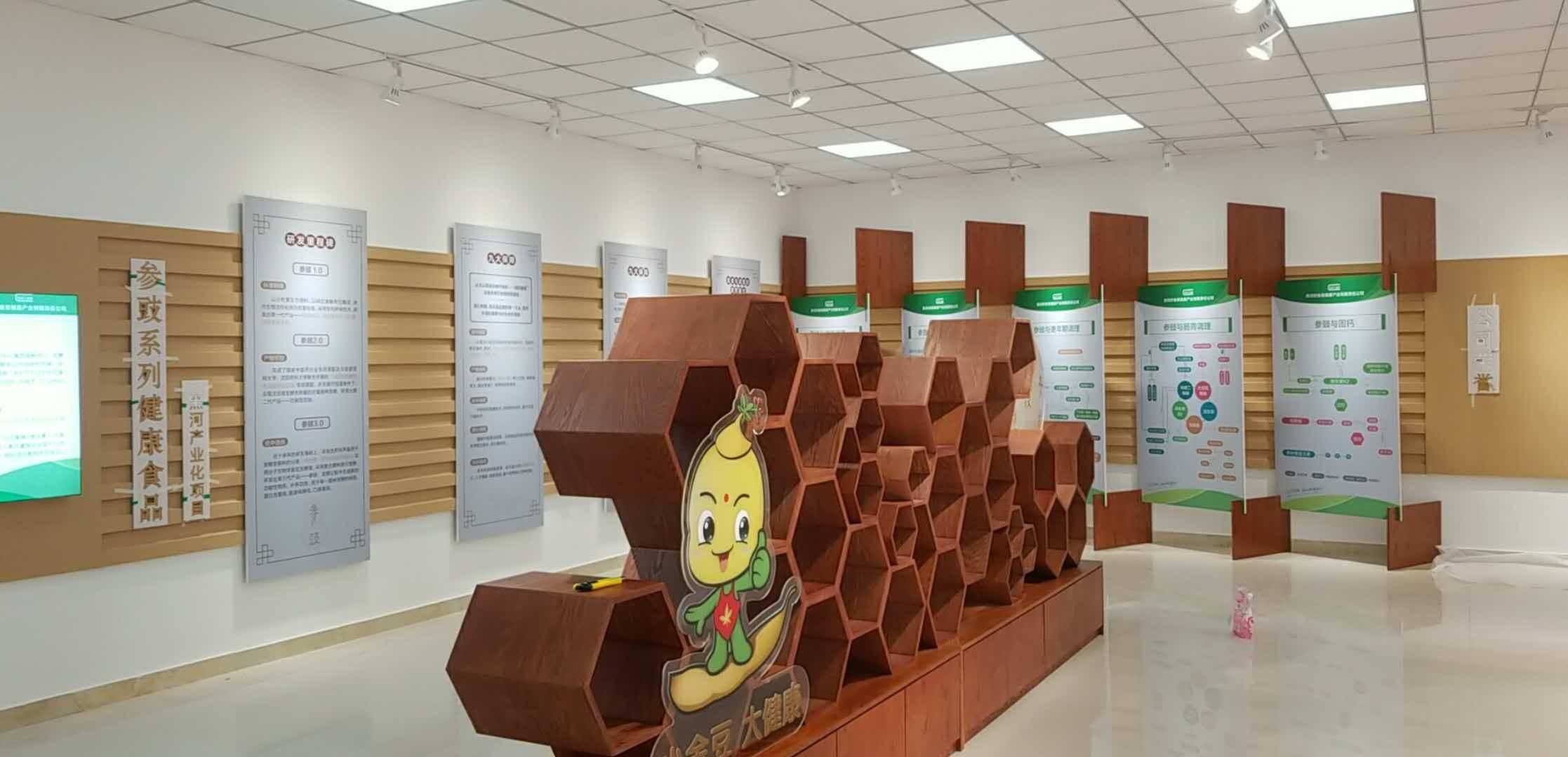 本次的設(shè)計(jì)理念賽凡深入了解企業(yè)歷史文化,注重企業(yè)的品牌內(nèi)涵,打造企業(yè)口碑。突出企業(yè)的科研實(shí)力,把黑河好食育力爭(zhēng)打造全國(guó)最具競(jìng)爭(zhēng)優(yōu)勢(shì)的綠色健康食品基地的理念貫徹到底,打造建設(shè)極富特色的好食育企業(yè)展廳。