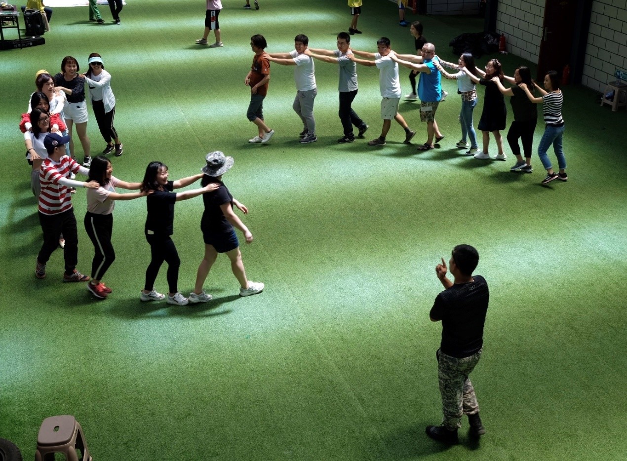 張老師讓我們?nèi)w員工圍成了一個(gè)圓圈,展開了團(tuán)隊(duì)型的熱身運(yùn)動(dòng),還開展了幽默的小游戲,考驗(yàn)了我們的反應(yīng)速度。在游戲過程中,我們有3名小伙伴進(jìn)行了游戲“懲罰”。