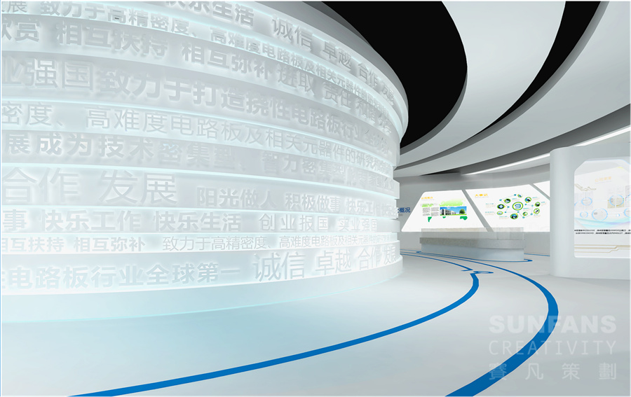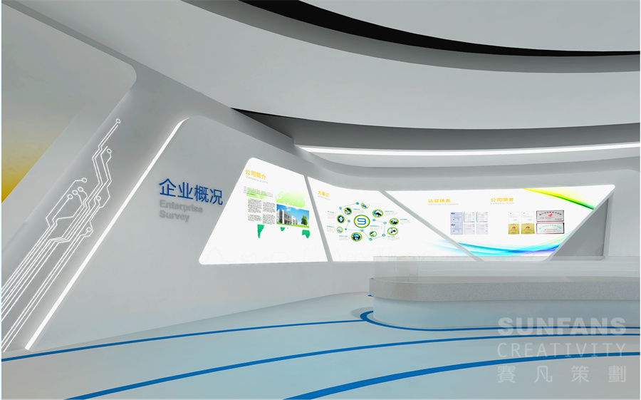 企業(yè)展廳是企業(yè)文化建設(shè)的重要載體,其核心功能是展覽、宣傳、教育,是企業(yè)文化建設(shè)的重要場所。賽凡策劃總結(jié)多年企業(yè)展廳設(shè)計經(jīng)驗,認(rèn)為企業(yè)展廳設(shè)計應(yīng)結(jié)合企業(yè)特質(zhì),將企業(yè)品牌形象和理念的設(shè)計元素融入展廳的每一寸空間內(nèi),通過合理規(guī)劃空間布局,將企業(yè)概況、發(fā)展演變史、領(lǐng)導(dǎo)關(guān)懷、業(yè)務(wù)產(chǎn)品、重大項目、目標(biāo)愿景等內(nèi)容差異化展示,營造豐富、趣味、參與性強的展陳空間,達(dá)到良好的宣傳展示效果。