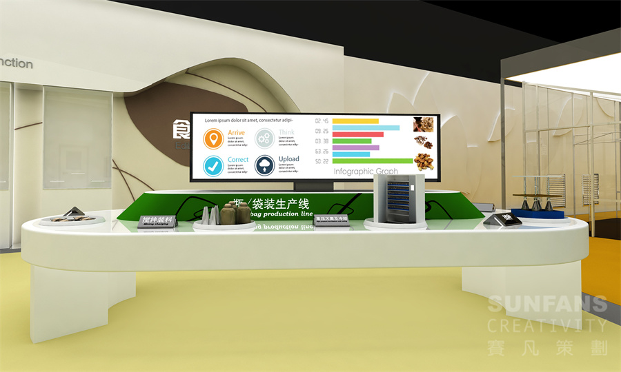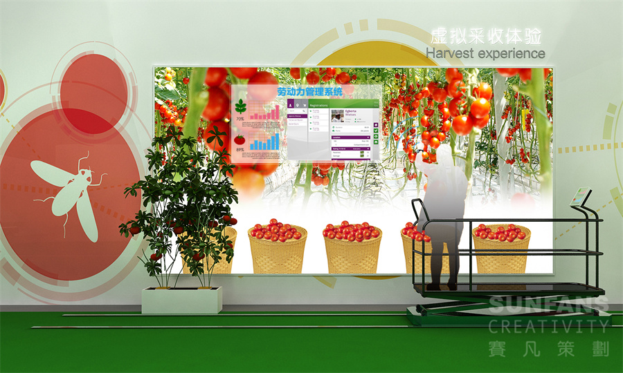 展館以工廠化農(nóng)業(yè)全產(chǎn)業(yè)鏈科技體驗為主,我們將展示區(qū)劃分為四大分區(qū):果菜、葉菜、花卉和食用菌,按照農(nóng)業(yè)全產(chǎn)業(yè)鏈“種子——餐桌”的游覽線索,向參觀者奉上了一場胃口大開的“美食之旅”。