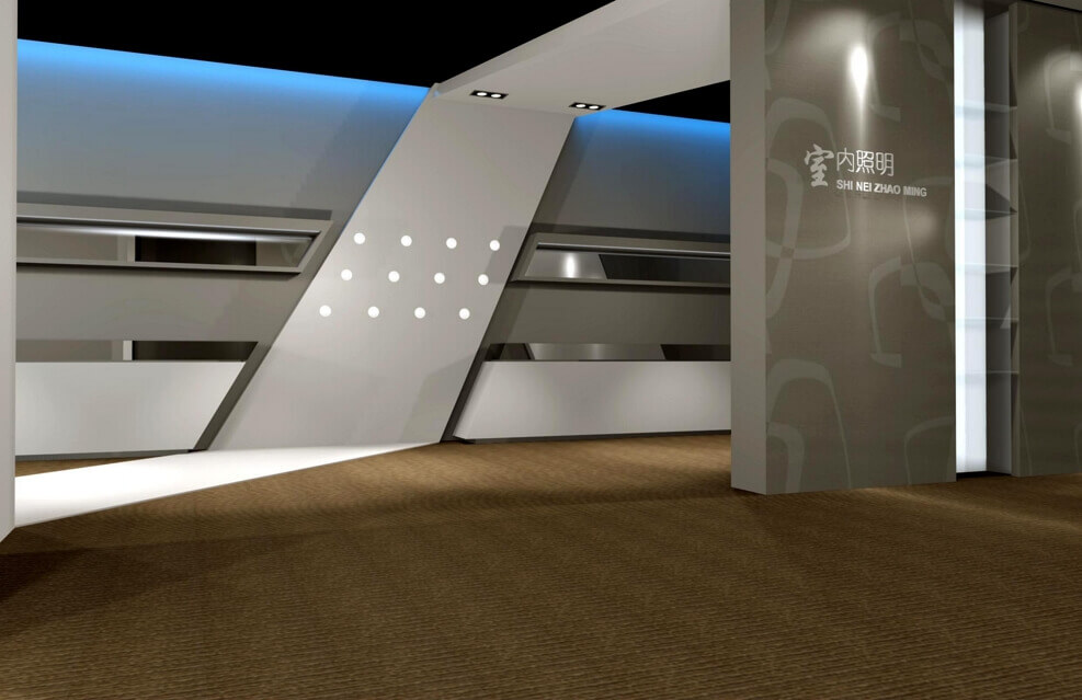 對(duì)展廳設(shè)計(jì)空間而言,空間界面展廳設(shè)計(jì)應(yīng)具有一定的視覺指示性和方位的導(dǎo)向性。這樣會(huì)使展示空間更加有序,空間流線更加清晰。頂棚的造型與展臺(tái)的造型交相呼應(yīng),一方面增強(qiáng)了空間的領(lǐng)域性,另一方面加強(qiáng)了視覺指示性,