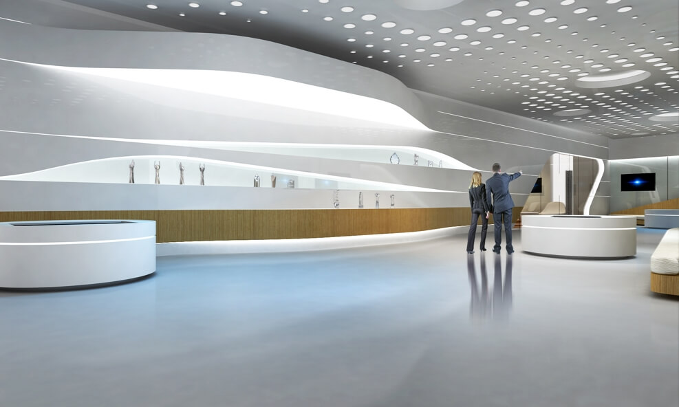 1.更注重特征的營造。由于大部分企業(yè)展廳、企業(yè)產(chǎn)品陳列室都在室內(nèi),室內(nèi)空間一般以矩形、半弧型為主,間雜承重柱,形式都比較接近,因此很多展廳設(shè)計看著“都很象”。其實每個企業(yè)都有自己的特點和亮點,只要仔細研究并設(shè)計,定能設(shè)計出彩的展廳設(shè)計。
