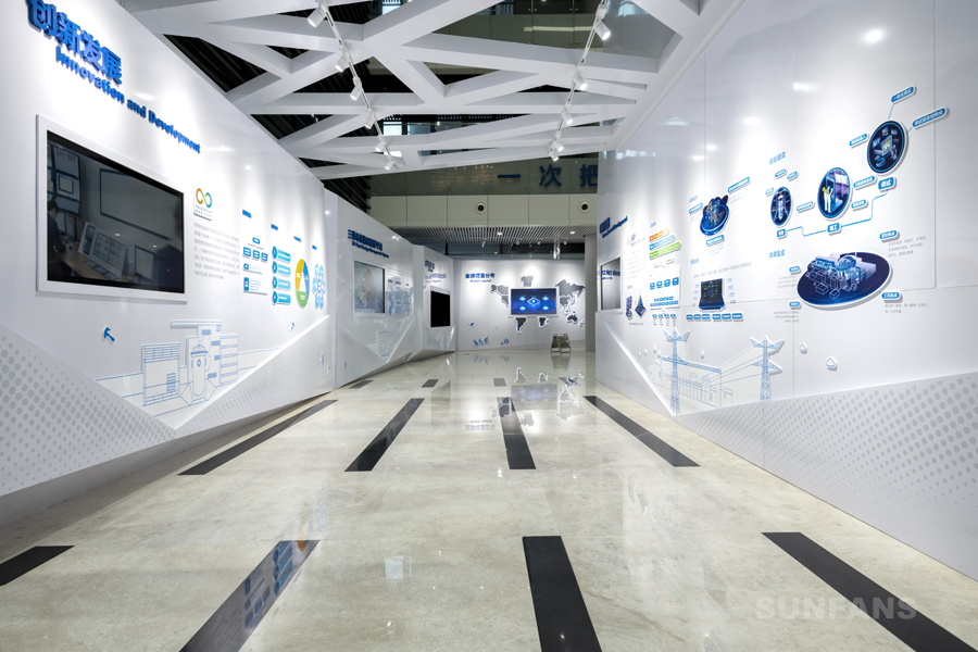 展廳中燈光的運(yùn)用是非常重要的,燈光設(shè)計(jì)需要注意對展示內(nèi)容進(jìn)行凸顯和襯托,還要能帶動觀眾的情緒節(jié)奏,對展廳整體環(huán)境進(jìn)行渲染。做好服務(wù)角色,在設(shè)計(jì)中掌握好燈光的“度”,可以對展廳起到“畫龍點(diǎn)睛”般的效果。