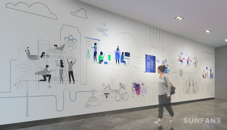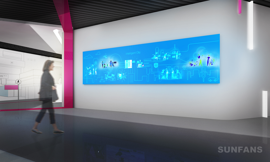 油墨導(dǎo)電互動(dòng)墻通過(guò)近距離觸控識(shí)別,墻面正前方安裝兩臺(tái)高清投影儀,墻面正上方是雷達(dá)感應(yīng)器,參觀者用手觸碰墻面上的貼圖或投影畫(huà)面,靜態(tài)墻面開(kāi)始發(fā)光/發(fā)聲,觸摸到相應(yīng)區(qū)域時(shí)立刻出現(xiàn)相應(yīng)的文字、視頻、動(dòng)畫(huà)等內(nèi)容,原先單一的靜態(tài)墻面瞬間“活”過(guò)來(lái),呈現(xiàn)一幅內(nèi)容豐富的絢麗畫(huà)面。