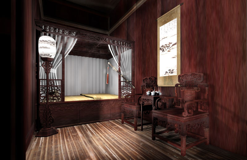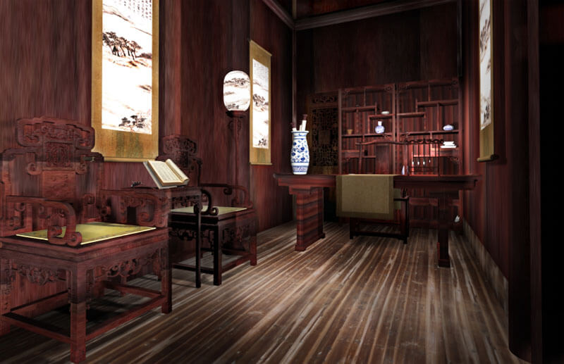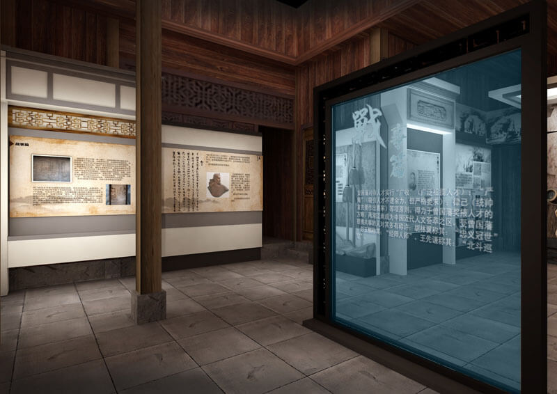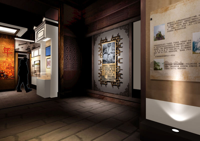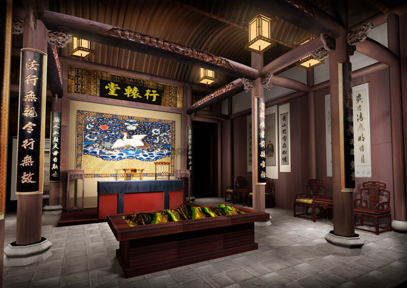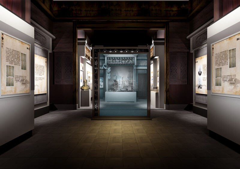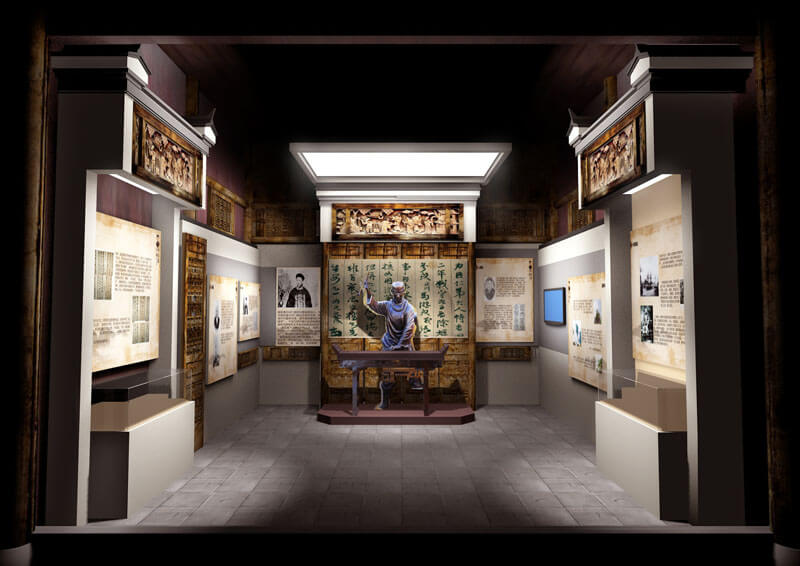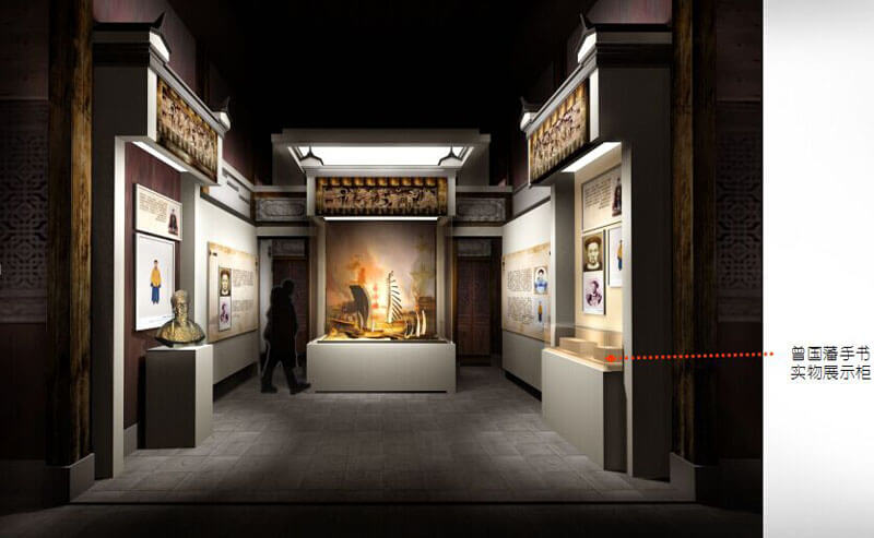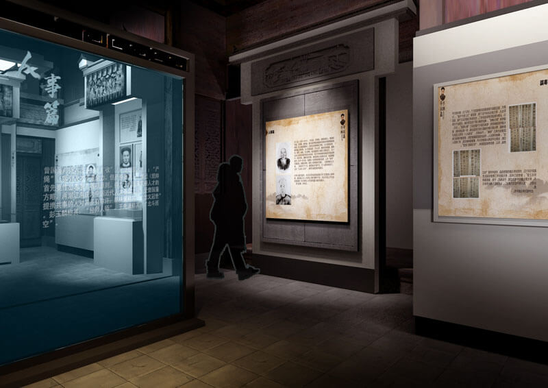 形式:突出祁門的地域特色,設(shè)計(jì)在洪家大屋結(jié)構(gòu)復(fù)原的基礎(chǔ)上,重新搭建展陳單元,在屋堂內(nèi)重現(xiàn)祁門經(jīng)典代表性建筑構(gòu)造,形成空間上的交錯(cuò),走入陳列館相對有限的空間內(nèi),就如同走入曾國藩所處時(shí)期的祁門一般,營造內(nèi)外一體,空間穿越的非凡感受。