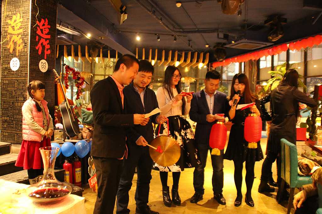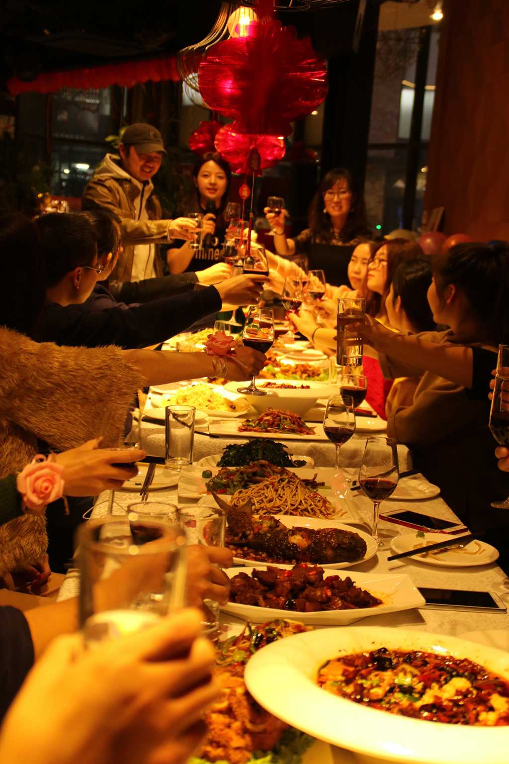 晚宴開(kāi)始,總經(jīng)理致辭,大家共同舉杯,為新年祝福,為美好的明天干杯!