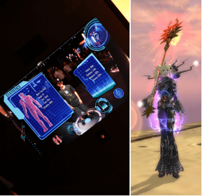 在虛擬的世界里,玩家獲取優(yōu)良裝備之后都是自己 的游戲角色裝備上。如果在展臺(tái)玩家可以通過(guò) 互動(dòng)設(shè)備自己“穿上”游戲世界中獲得的裝備可能比 拿到裝備時(shí)的心情更激動(dòng)。 |