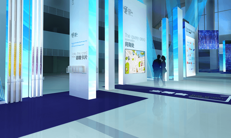 本次展會的整體空間創(chuàng)意,從貴州的地理元素中提取“自然生態(tài)”作為文化符號,并將網(wǎng)絡(luò)世界數(shù)據(jù)模塊與自然界叢林符號進(jìn)行藝術(shù)化嫁接,使熱帶雨林的自然景觀和人文內(nèi)涵自然融合,演繹出大數(shù)據(jù)模擬從林生態(tài)系統(tǒng),形成本次大數(shù)據(jù)博覽會整體布局的創(chuàng)意造型,營造和渲染“爽爽貴陽”從“生態(tài)貴陽”進(jìn)入“大數(shù)據(jù)貴陽”,進(jìn)而邁向“貴陽云世界”的綠色發(fā)展之路。