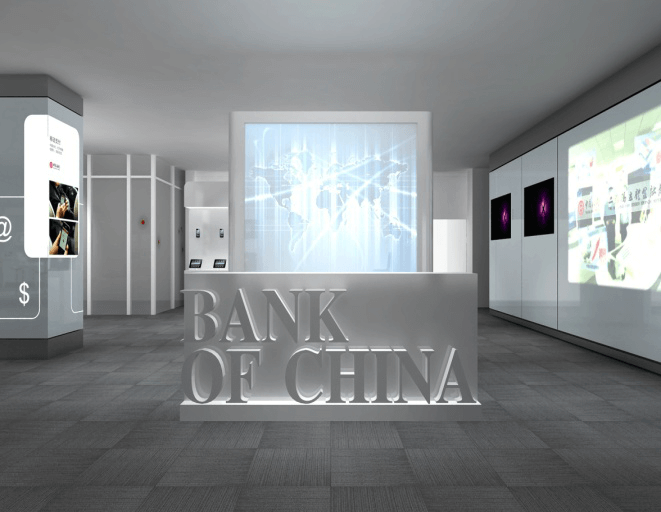 中國銀行“未來銀行實(shí)驗(yàn)室”展廳設(shè)計,以象征著快捷、可靠理念的“紙飛機(jī)”為元素藍(lán)本,設(shè)計主要視覺形象。